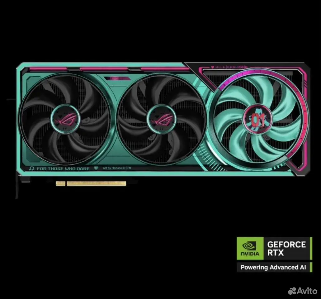 https://www.avito.ru/ussuriysk/tovary_dlya_kompyutera/asus_rog_astral_rtx5080_hatsune_miku-edition_7665300326?context=H4sIAAAAAAAA_wE_AMD_YToyOntzOjEzOiJsb2NhbFByaW9yaXR5IjtiOjA7czoxOiJ4IjtzOjE2OiJmMTlzZ213UDZ3aXl1NVNoIjt9vgdVdD8AAAA Видеокарта ROG Astral RTX5080 16GB GDDR7 OC HATSUNE MIKU EDITION с четырьмя вентиляторами, обеспечивающими беспрецедентный уровень воздушного охлаждения. - Коллаборация брендов: футуристическая эстетика ROG в сочетании с цветовой гаммой Хацунэ Мику, в которой преобладают сине-зеленые и розовые оттенки. - ИИ-производительность: 1899 TOPS. - Архитектура NVIDIA Blackwell и технология DLSS 4. - Повышенная частота: 2790 МГц (в режиме разгона) / 2760 MHz (в стандартном режиме) - Четыре вентилятора: усиление воздушного потока и давления на 20%. - Эффективное охлаждение: испарительная камера с фрезерованным теплораспределителем. - Термопрокладка с фазовым переходом: обеспечивает высокую теплопроводность и долгосрочную эффективность охлаждения. - Форм-фактор 3,8 слота: позволил вместить массивный радиатор с четырьмя вентиляторами Axial-tech. - Технология GPU Guard: усиленное крепление чипа графического процессора. - ​Литой металлический кожух, задняя пластина и монтажная планка: повышают структурную прочность устройства. - Стабильная работа и высокий разгонный потенциал за счет использования 50-амперных транзисторов. - Специальное покрытие печатной платы защищает от влаги, пыли и экстремальных температур.