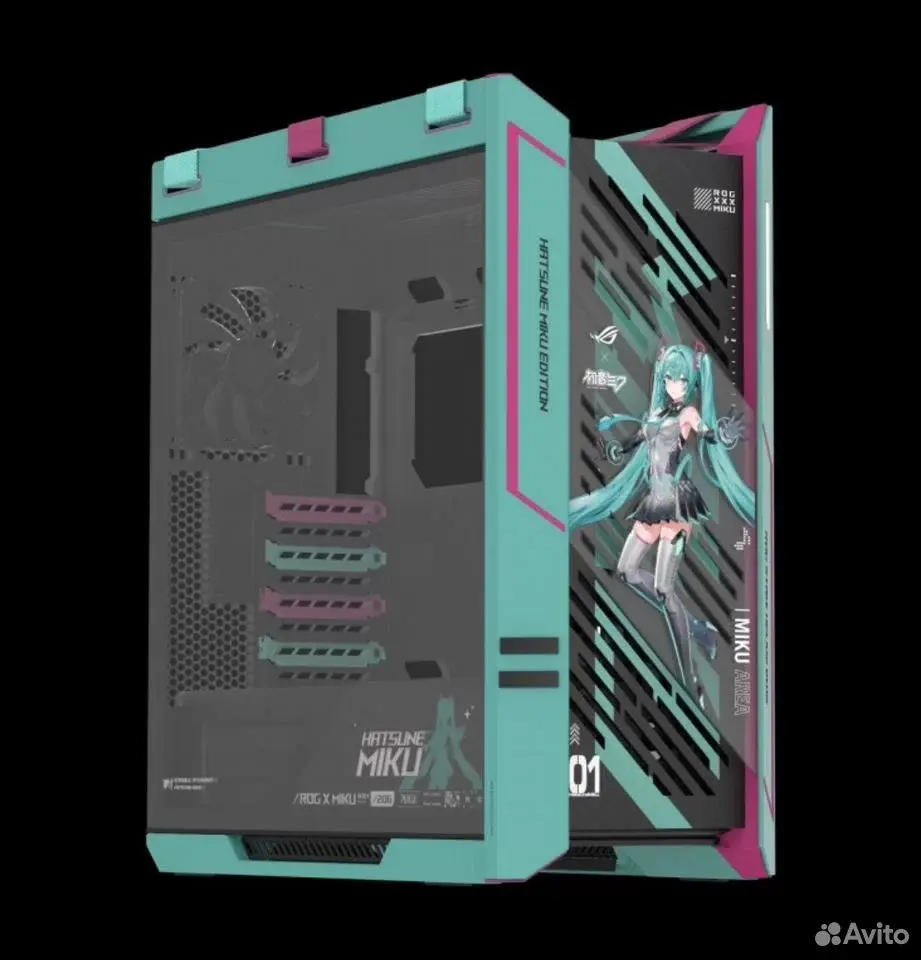https://www.avito.ru/ussuriysk/tovary_dlya_kompyutera/korpus_rog_strix_helios_ii_hatsune_miku_edition_7665615857?slocation=621540&context=H4sIAAAAAAAA_wE_AMD_YToyOntzOjEzOiJsb2NhbFByaW9yaXR5IjtiOjA7czoxOiJ4IjtzOjE2OiJjRnFPYjdYM2dsZXZHVm1PIjt9cOaOST8AAAA ROG Strix Helios II Hatsune Miku Edition - компьютерный корпус формата Mid-Tower: совместимость с форм-фактором EATX, алюминиевая рама и стеклянные панели, возможность установи видеокарт длиной до 450 мм и радиаторов водяного охлаждения размером 420 мм - Коллаборация брендов: футуристическая эстетика ROG в сочетании с цветовой гаммой Хацунэ Мику, в которой преобладают сине-зеленые и розовые оттенки - Великолепный дизайн с решетчатой передней панелью из алюминия - Четыре предустановленных вентилятора (140 х 28 мм) - Совместимость с материнскими платами форм-фактора EATX и видеокартами длиной до 450 мм, крепление для графического слота, отсоединяемая монтажная планка для блока питания на задней панели - Система прокладки кабелей для сборки аккуратно выглядящего компьютера - Интерфейсная панель: два порта USB-C 20 Гбит/с, четыре порта USB-A 3.0, кнопка управления адресуемой подсветкой, кнопка управления вентиляторами - Стильные и удобные тканевые ручки для переноски