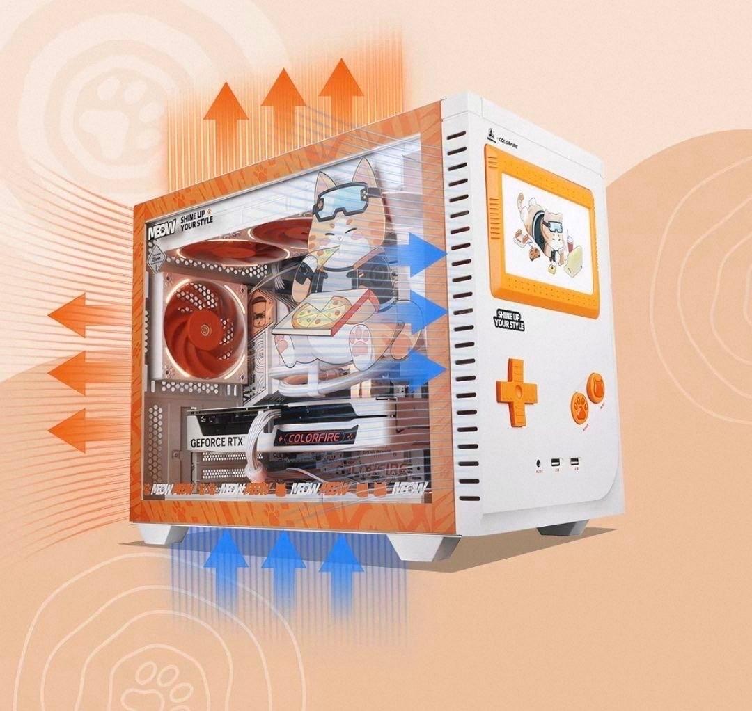 ▌ Игровой корпус Colorfire MEOW Colorfire MEOW — это не просто корпус для ПК, а настоящее произведение искусства для геймеров и любителей необычного дизайна. Корпус выполнен в стиле «тёмной кошки» с уникальным темно-фиолетовым окрасом и эффектным силуэтом кота на передней панели, что делает его ярким акцентом в любом интерьере. ▌ 🔥 Ключевые преимущества: - Дизайн с характером - Лицевая панель с большим котом и подсветкой. - Левая стенка с окном — через него виден внутренний мир ПК и играющий котик с подсветкой. - Стиль, вдохновлённый ретро-консольными играми 80-х и 90-х. - Продуманная конструкция - Поддержка материнских плат MicroATX и Mini-ITX. - Возможность установки до трёх 2,5" и одного 3,5" накопителя. - Совместимость с 240-мм системами жидкостного охлаждения и воздушными кулерами до 170 мм. - До шести 120-мм вентиляторов для эффективного охлаждения. - Внутренний мир - Простор для апгрейда и аккуратной укладки кабелей. - Отличная вентиляция благодаря сетчатой передней панели. - Часть экосистемы MEOW - В серию входят видеокарты и материнские платы с аналогичным дизайном — можно собрать полностью «кошачий» ПК! Colorfire MEOW — это корпус для тех, кто хочет выделиться, подчеркнуть свою индивидуальность и любовь к необычным решениям. Ваш ПК станет не только мощной игровой станцией, но и настоящим украшением комнаты